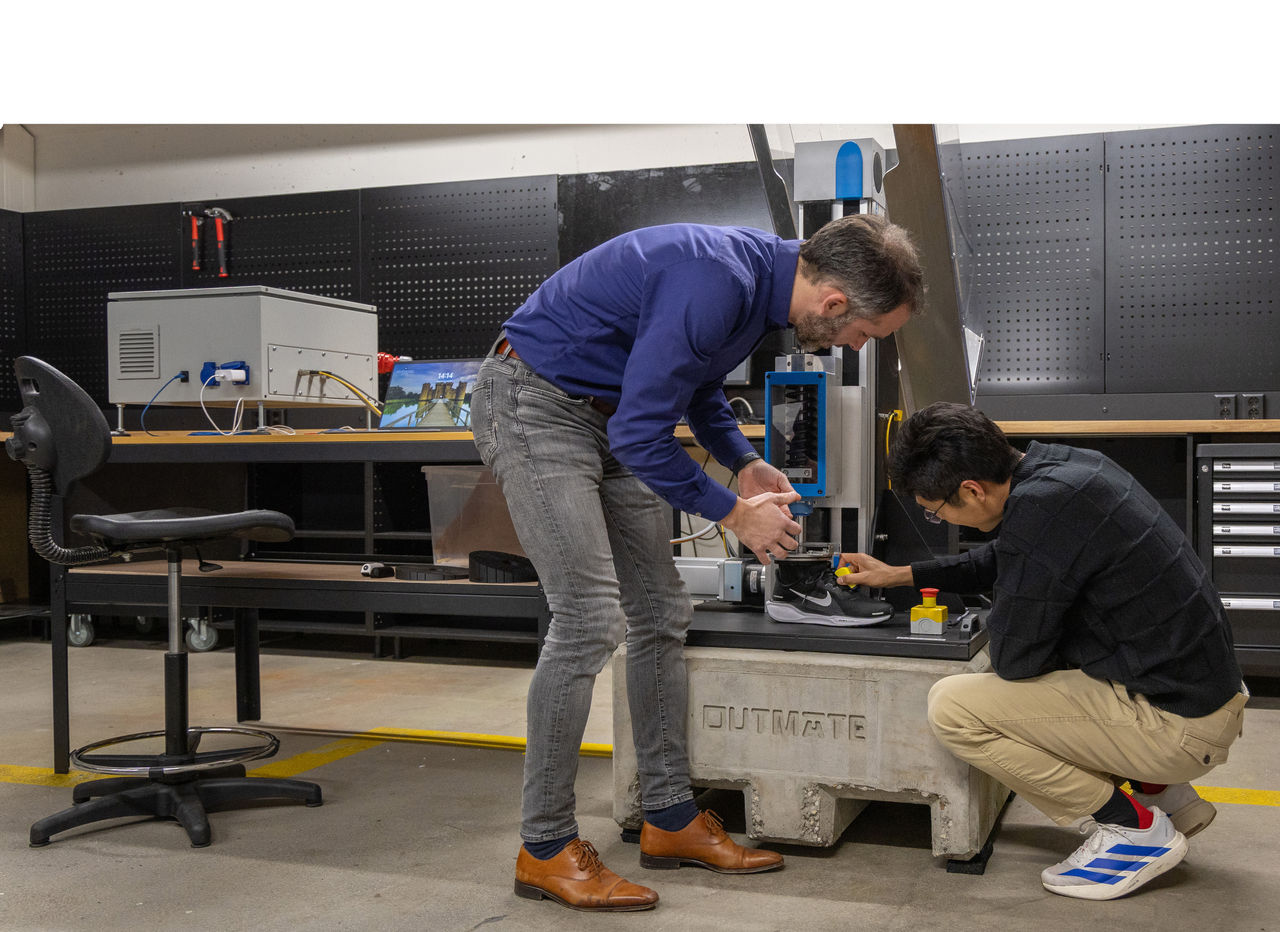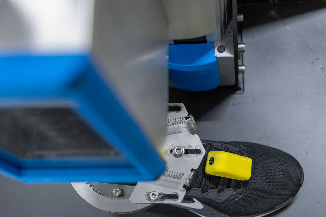 Voor de ontwikkeling van de sensor werkt WearM.AI samen met Dynteq uit Enschede, een gerenommeerde productontwikkelingspartner voor start-ups. Dynteq heeft ook een installatie ontwikkeld om de sensor en de bevestiging ervan aan de veters van een hardloopschoen te testen. De testopstelling kan daadwerkelijk stappen zetten, net als een echte hardloper. De sensor moet minimaal 100.000 stappen meegaan, ongeveer gelijk aan vijf marathons. “Met behulp van deze testopstelling kun je gericht toewerken naar een hoogwaardig eindproduct”, zegt Tijn Huttenhuis, lead engineer bij Dynteq. Tijdens de conceptfase werkte Dynteq diverse bewegingsprofielen uit, waarin de afwikkeling van de voet - van hiel naar teen - werd gesimuleerd. In overleg met WearM.AI werd bepaald welke parameters in de testopstelling moesten worden opgenomen. De belangrijkste daarvan was een versnelling van 80 m/s² (8G) bij de landing van de voet.