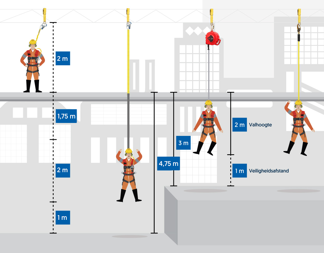 Het is belangrijk om werkzaamheden op hoogte goed te kunnen uitvoeren. Houd bij de keuze van een vallijn of valstopapparaat daarom rekening met de vereiste bewegingsvrijheid en de valhoogte.