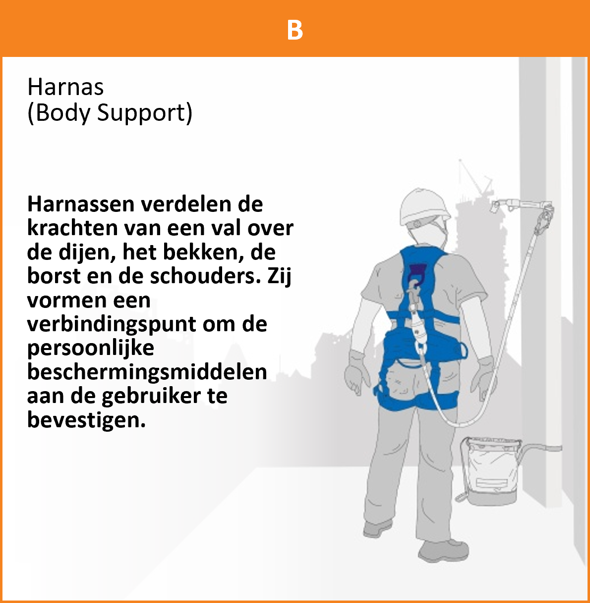 Een doeltreffend valbeveiligingssysteem begint bij de juiste combinatie van drie essentiële componenten – het zogenaamde ABC van valbeveiliging. A staat voor Anchorages (ankerpunten), B voor Body Support (harnassen) en C voor Connecting Devices (vanglijnen). Samen vormen ze één geïntegreerd systeem dat optimale veiligheid en gebruiksgemak biedt, zodat iedere professional met vertrouwen op hoogte kan werken.