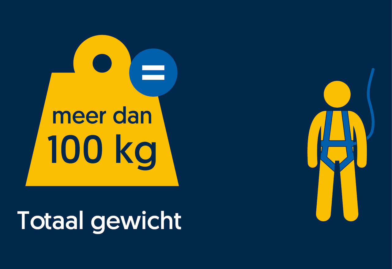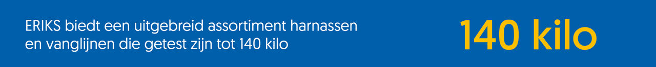 100 kg is de testmassa volgens de relevante normen voor het testen en certificeren van valbeveiligingsuitrusting. Het extra gewicht (gereedschap, PBM-kleding, maar ook hittebestendige en vlam vertragende lasbeschermingsmiddelen) dat werknemers op hoogte dragen, overschrijdt deze 100 kg al snel. ERIKS biedt een uitgebreid assortiment harnassen en vanglijnen die getest zijn tot 140 kg om zelfs de persoon die deze 100 kg met persoonlijke beschermingsmiddelen en accessoires draagt, op een toelaatbare en betrouwbare manier vast te zetten.
