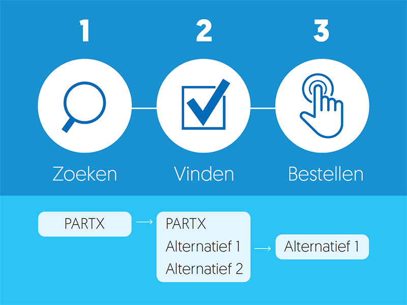 U voert eenvoudig het artikelnummer van de producent in en klikt op de 'zoek'-button. Scrollen door het assortiment van één bepaalde leverancier kan ook. Selecteer uw merk in het drop-down menu en klik op de 'zoek'-button.