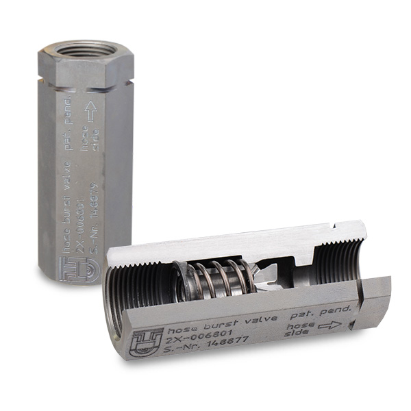 In geval van plotselinge slangbreuk sluit het ventiel de olietoevoer naar de slang doeltreffend af.