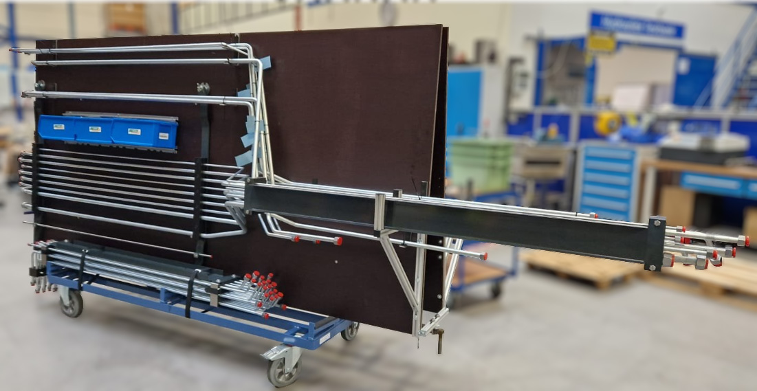 Wij ontwikkelen samen met onze klanten slimme logistieke oplossingen, zoals hydrauliekslangen- en pre-fab-leiding trolleys. De repeterende aanlevering van complete modules wordt volledig afgestemd op de werkprocessen en behoeften binnen jouw bedrijf.